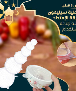 عرض 6 قطع أغطية سيليكون فائقة الإمتداد قابلة لإعادة الاستخدام