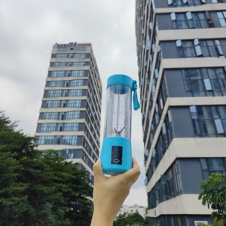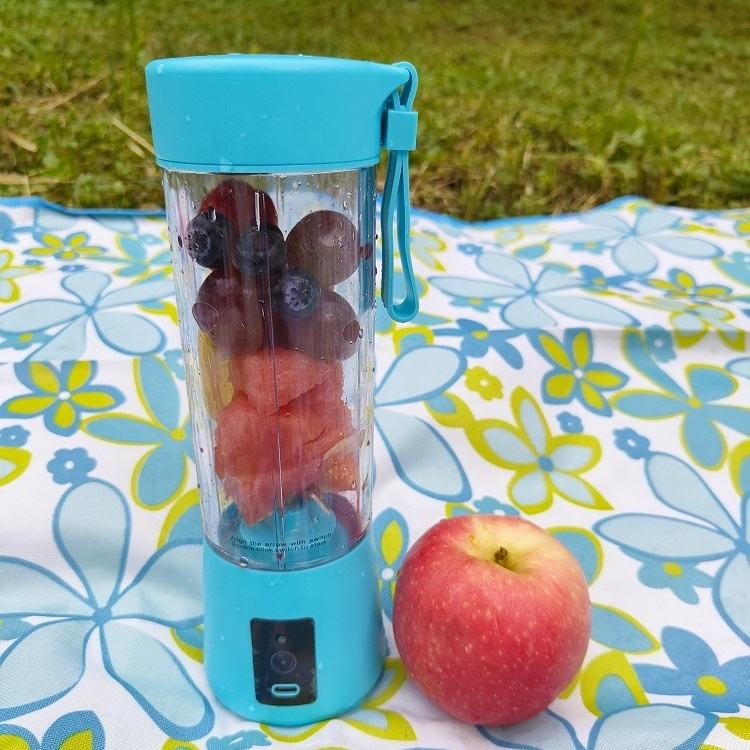 الخلاط مزود ببطارية قوية، شحن USB، سعة مناسبة، مصفاة لتصفية العصائر، وتصميم محمول خفيف الوزن.