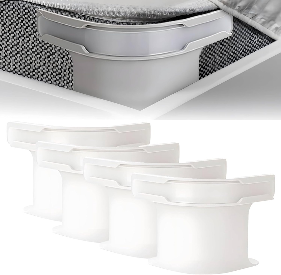 أربعة قطع لتثبيت جميع زوايا السرير، تصميم ثلاثي قوي، أشرطة مطاطية عالية الجودة مع مشابك ثابتة، تركيب سريع وسهل، ومتوافق مع جميع أنواع الأغطية.