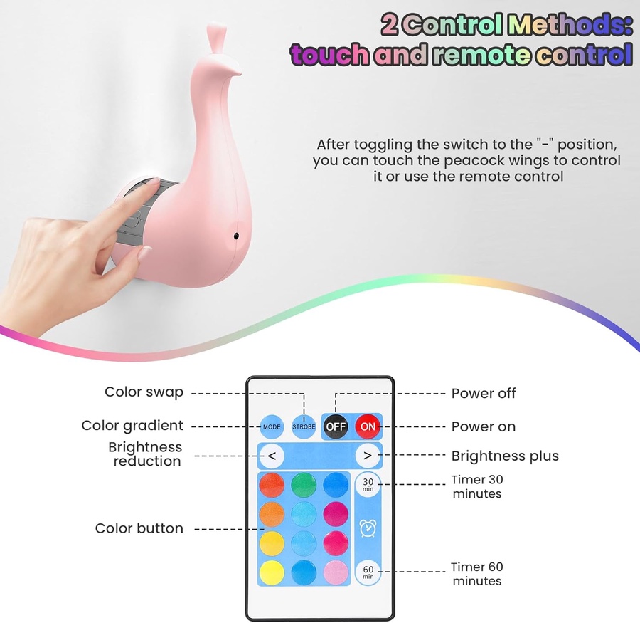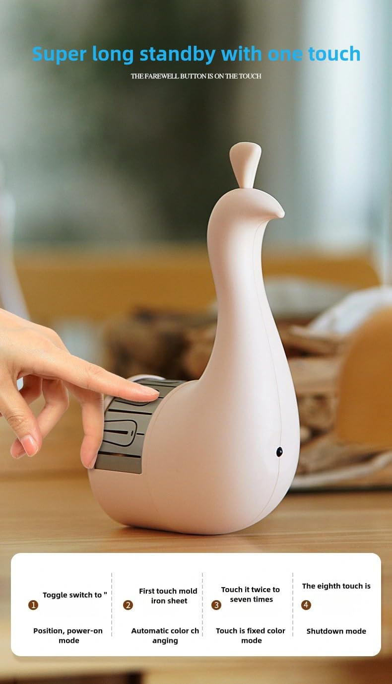 حوّل أي مساحة في بيتك لتحفة فنية تبهر كل اللي يشوفها مع طاووس الإضاءة الديكورية USB. تصميم أنيق مستوحى من جمال الطاووس، بإضاءة جناحات ملونة بتخلق أجواء ساحرة ورومانسية، وتضيف لمسة شياكة غير تقليدية لأي غرفة.
