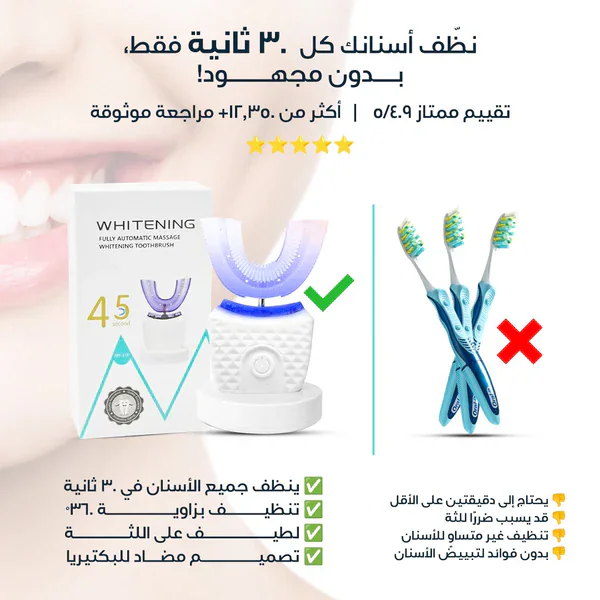 لو بتدور على طريقة سهلة وسريعة لتنضيف سنانك من غير فرك ولا مجهود، فرشة الأسنان الكهربائية U-Shape هي الحل الذكي ليك.