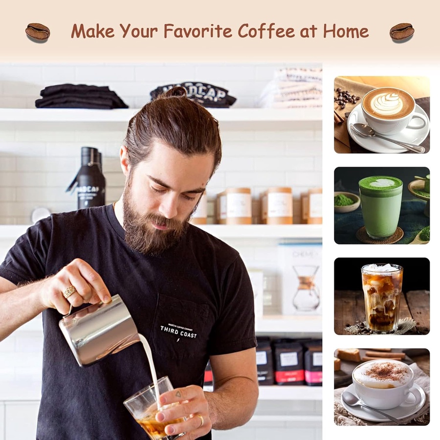 استمتع برغوة القهوة والمشروبات الساخنة مثل الكابتشينو واللاتيه في البيت بسهولة واحترافية، تمامًا زي الكافيهات.