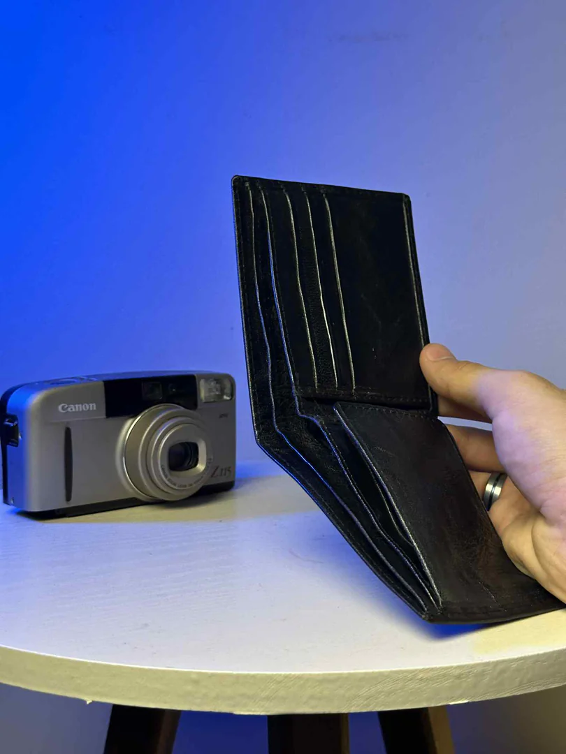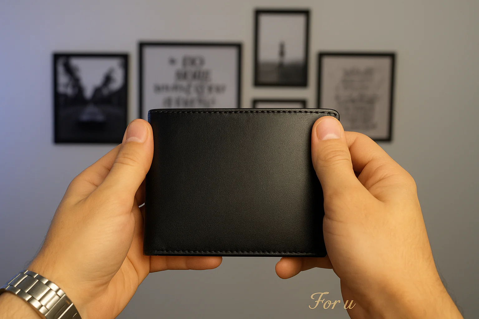 دلوقتي تقدر تحافظ على نقودك وبطاقاتك بأناقة مع محفظة الجلد الطبيعي باللون الأسود، المصممة بعناية لتدوم معاك لسنين.