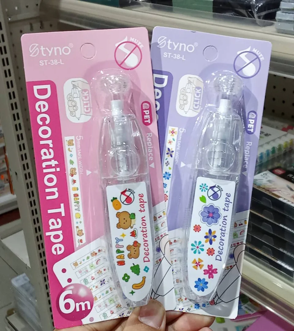 قلم شريط الديكوريشن هو الحل السريع والشيك لتزيين أي ورقة أو مشروع يدوي. بسيط، كيوت، ونتيجته مبهجة من أول استخدام ✨