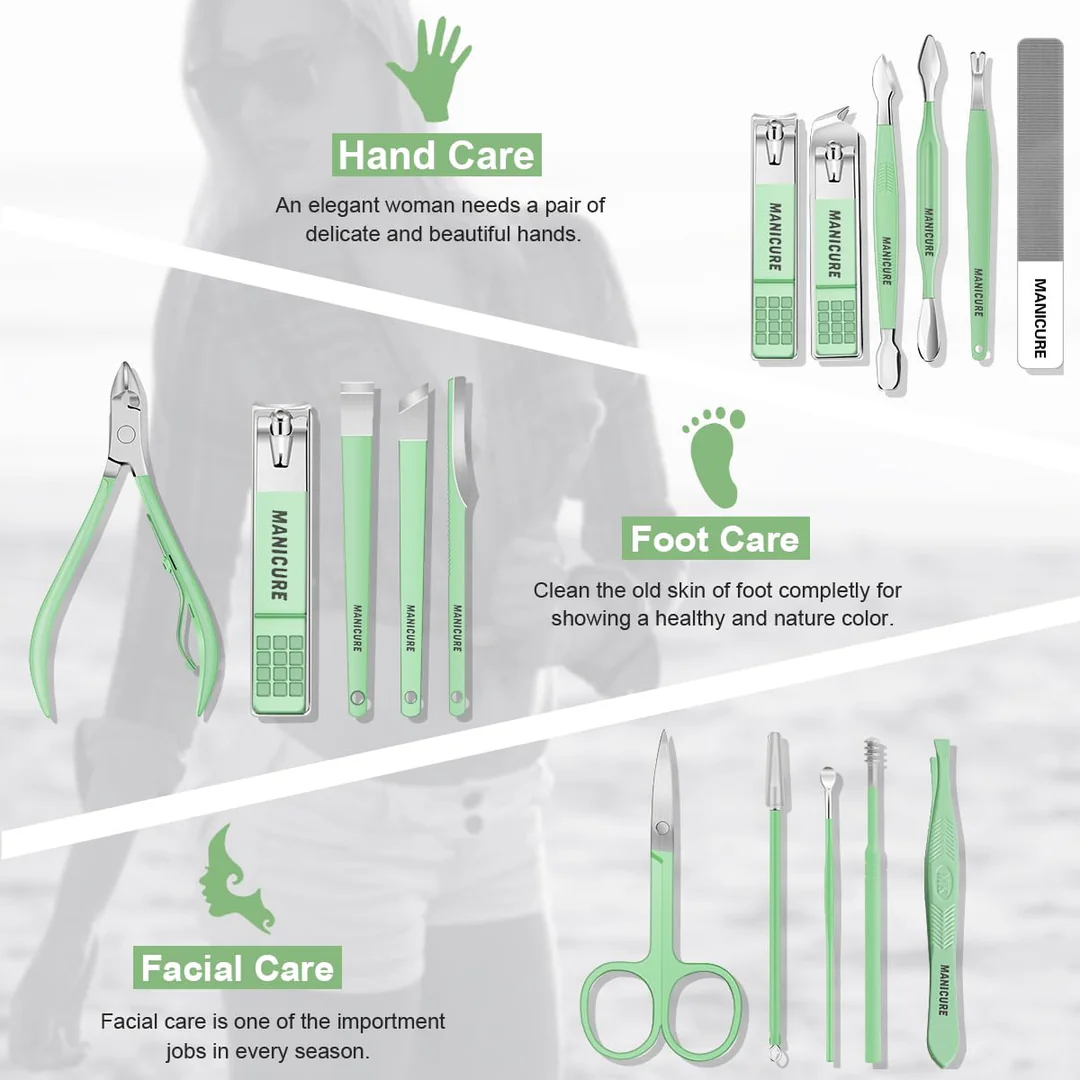 اعتني بأظافرك في البيت أو أثناء السفر مع طقم العناية بالأظافر 16 قطعة، مثالي للعناية الشاملة باليدين والقدمين للرجال والنساء على حد سواء.
