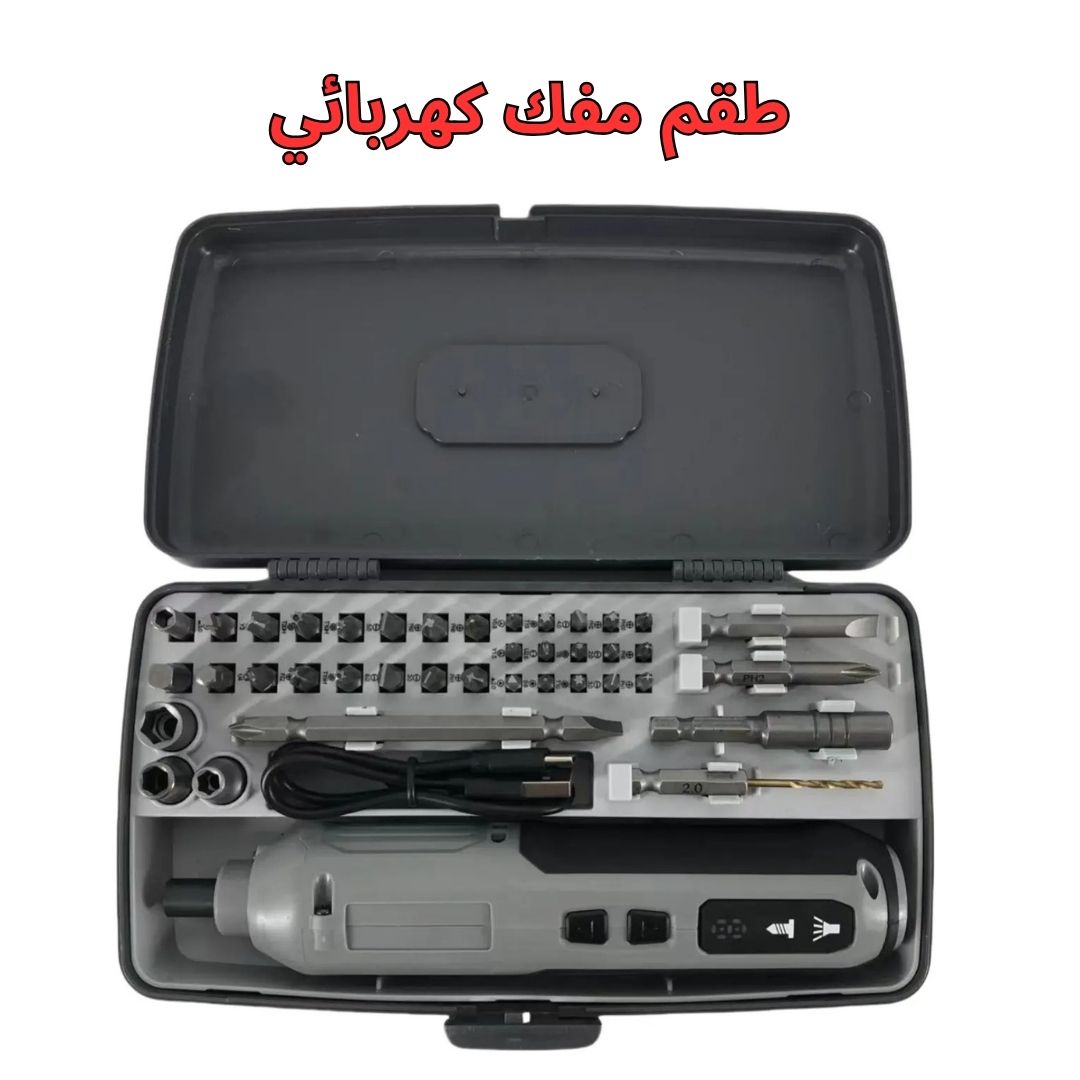 اجعل أعمال التركيب والفك أسرع وأسهل مع طقم المفك الكهربائي الذكي. مناسب للمنزل، المكتب، الورشة، وهواة الإلكترونيات والصيانة وتجميع الأثاث.